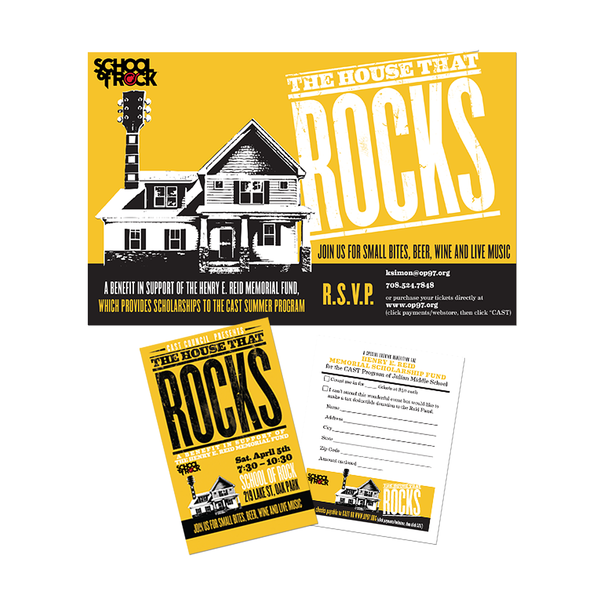 Invitation and RSVP card promoting a benefit for a kids performing arts organization. Client: CAST