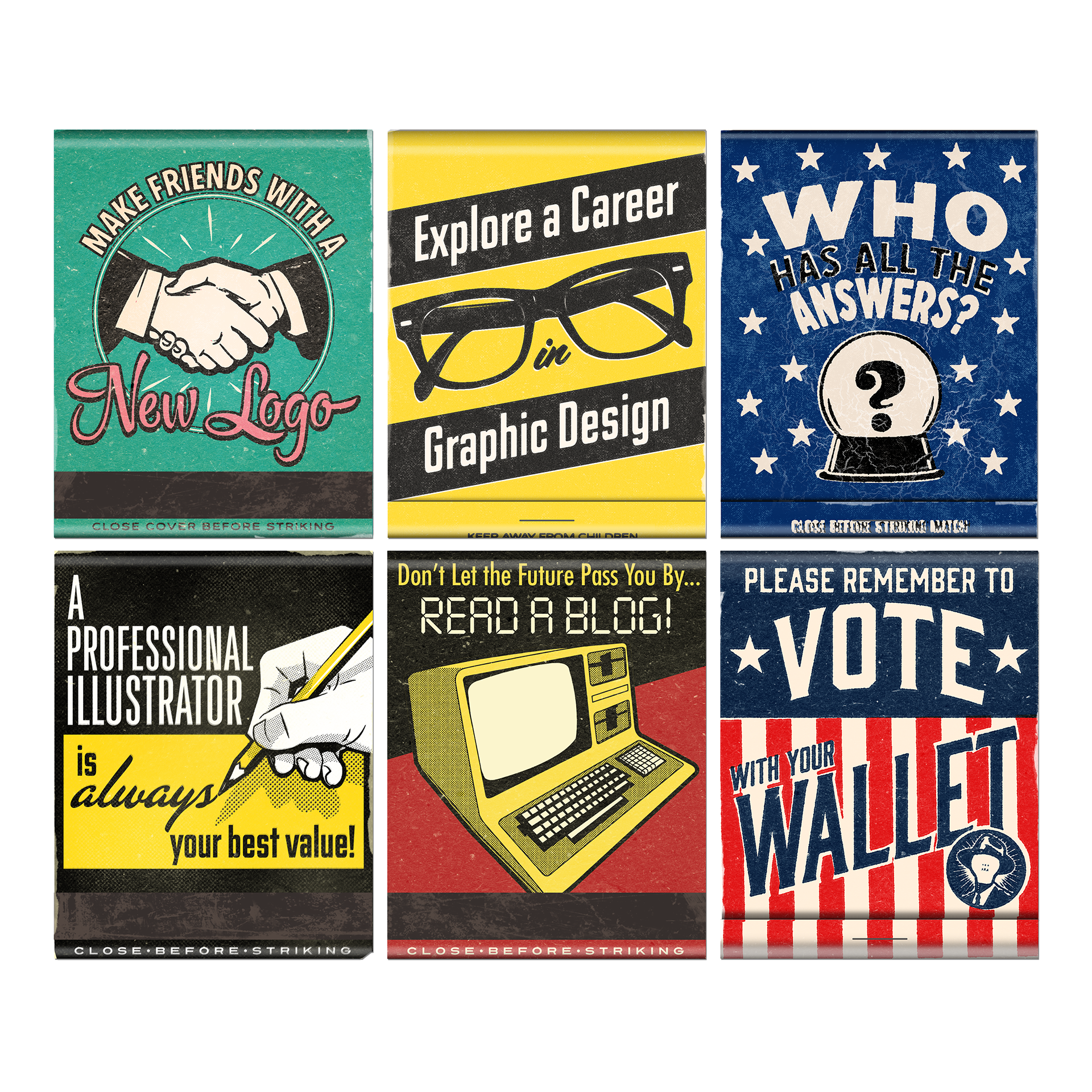 Self-promotional illustrations taking my obsession with vintage design ephemera to its logical conclusion.
