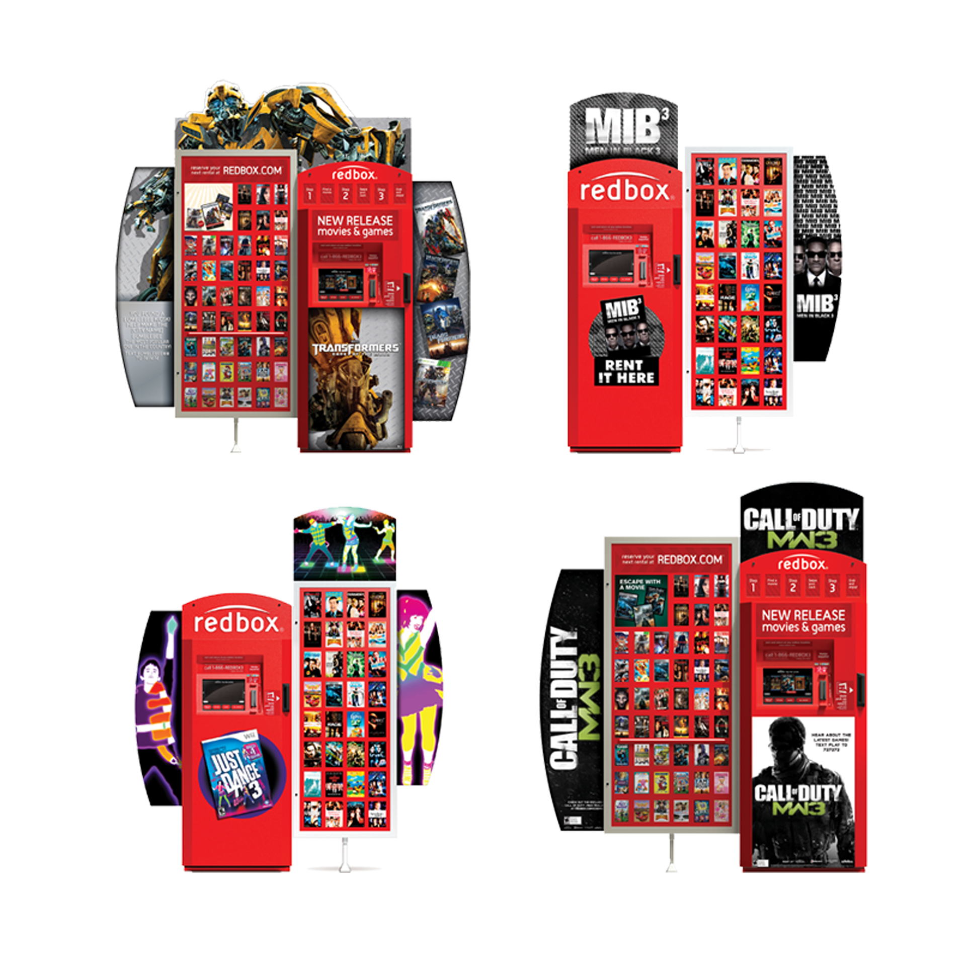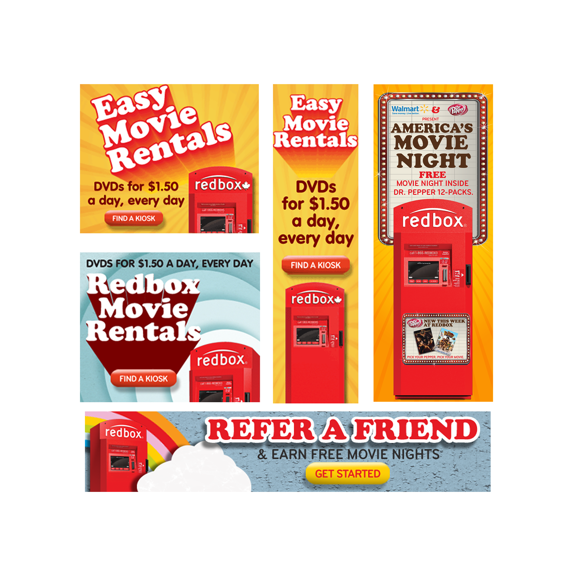 Holiday campaign including logo, kiosk sticker, screens, as well as print and online ads. Client: redbox