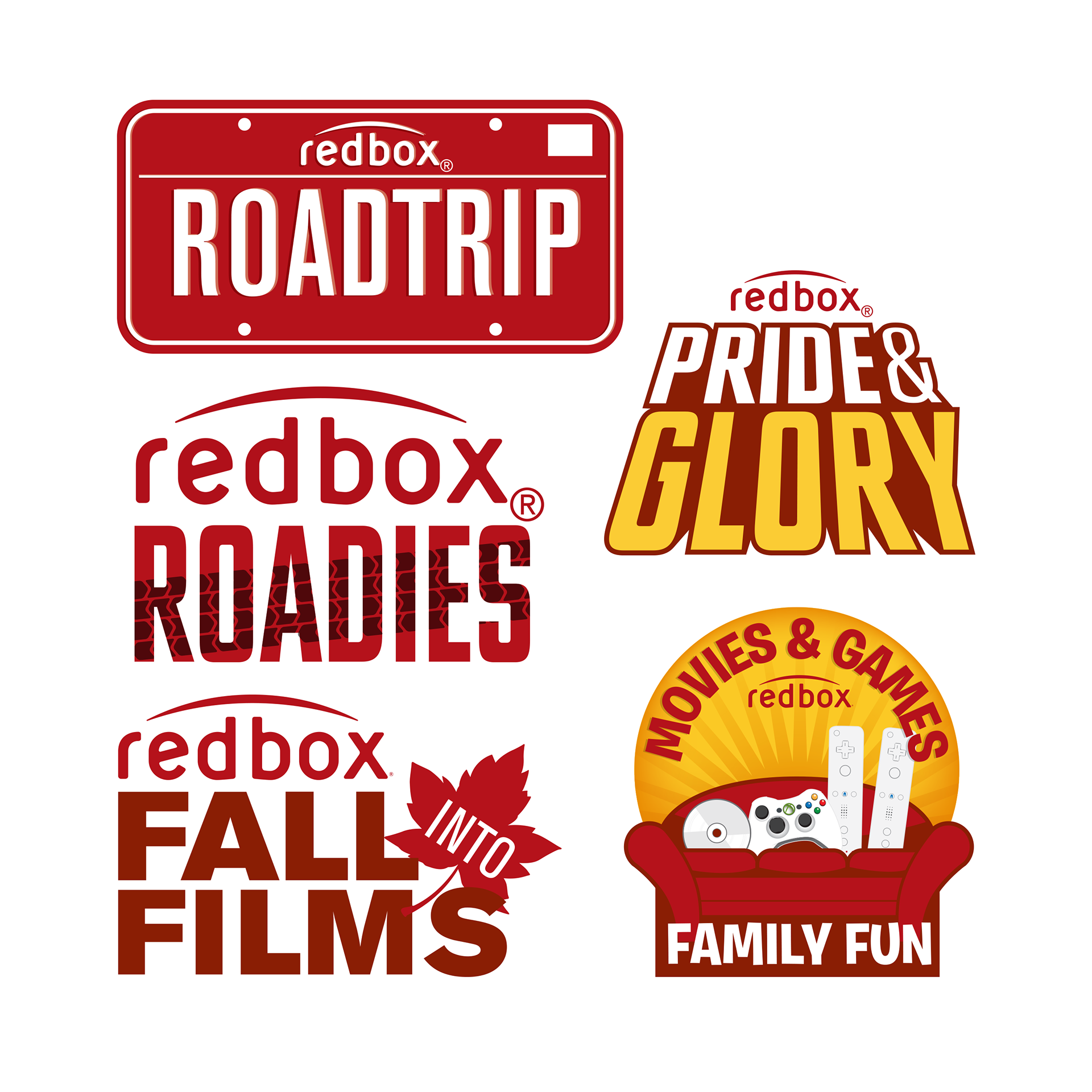 Various in-house and consumer-facing promotional logos. Client: redbox